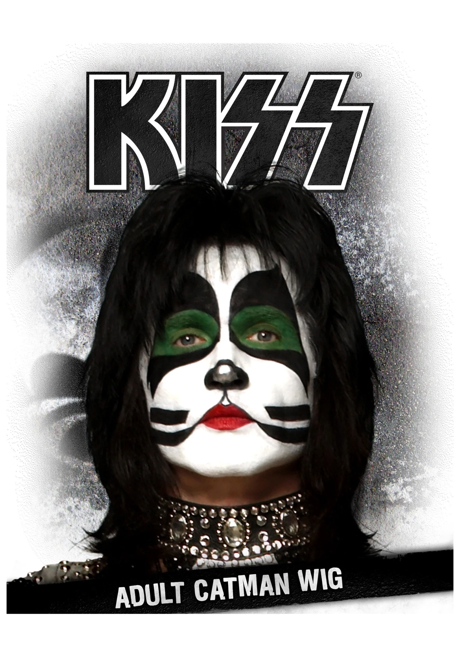 So if you’re trying to pass off for part of the band, some extreme make-up is a must. Also, you should get your hands on the proper bling… and some gnarly hair. Our Catman KISS Wig is just what you need if you’re aiming to mimic KISS’ famous drummer, Peter Kriss, The Catman. It’s 100 percent synthetic, styled, and black as the night. Warning: may cause furious head-banging.