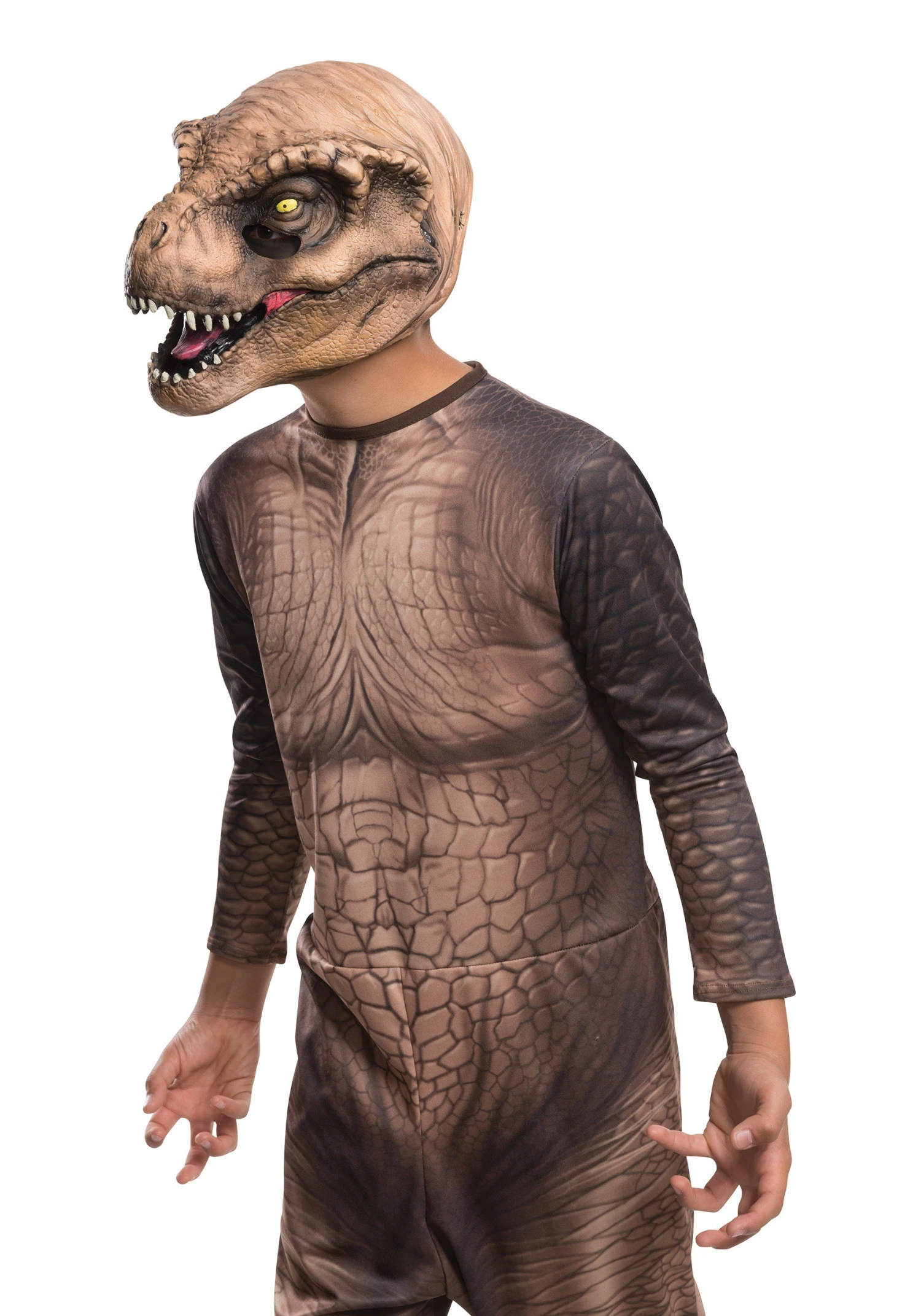 Does your child roam the house snarling and roaring like a prehistoric dinosaur? Maybe it’s time that he climbed to the top of the food chain with this Child Jurassic World T-Rex 3/4 Mask. It has all of the ferocity from the movie, but it fits on your child’s head, turning him into the apex predator in Jurassic Park.